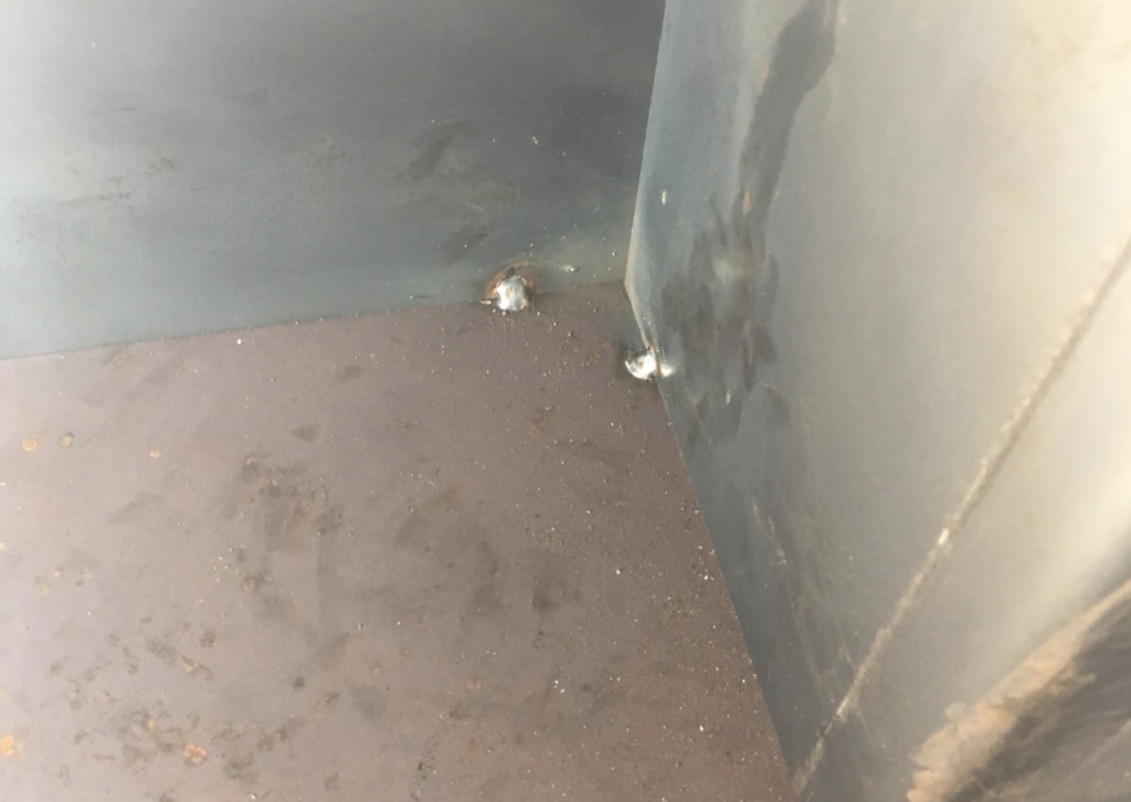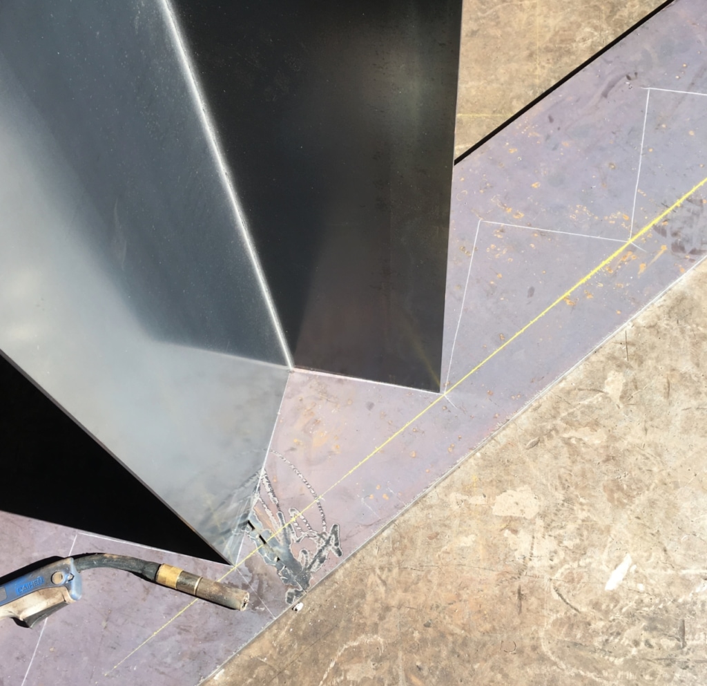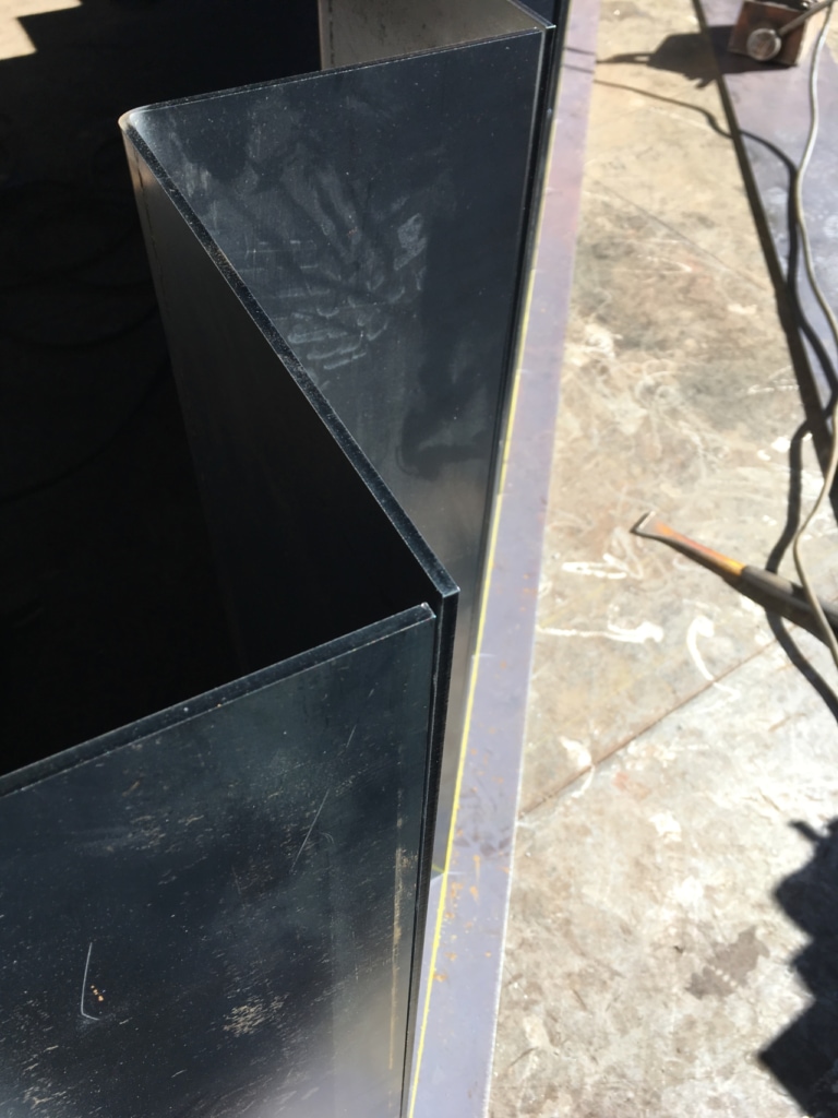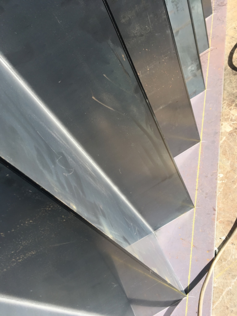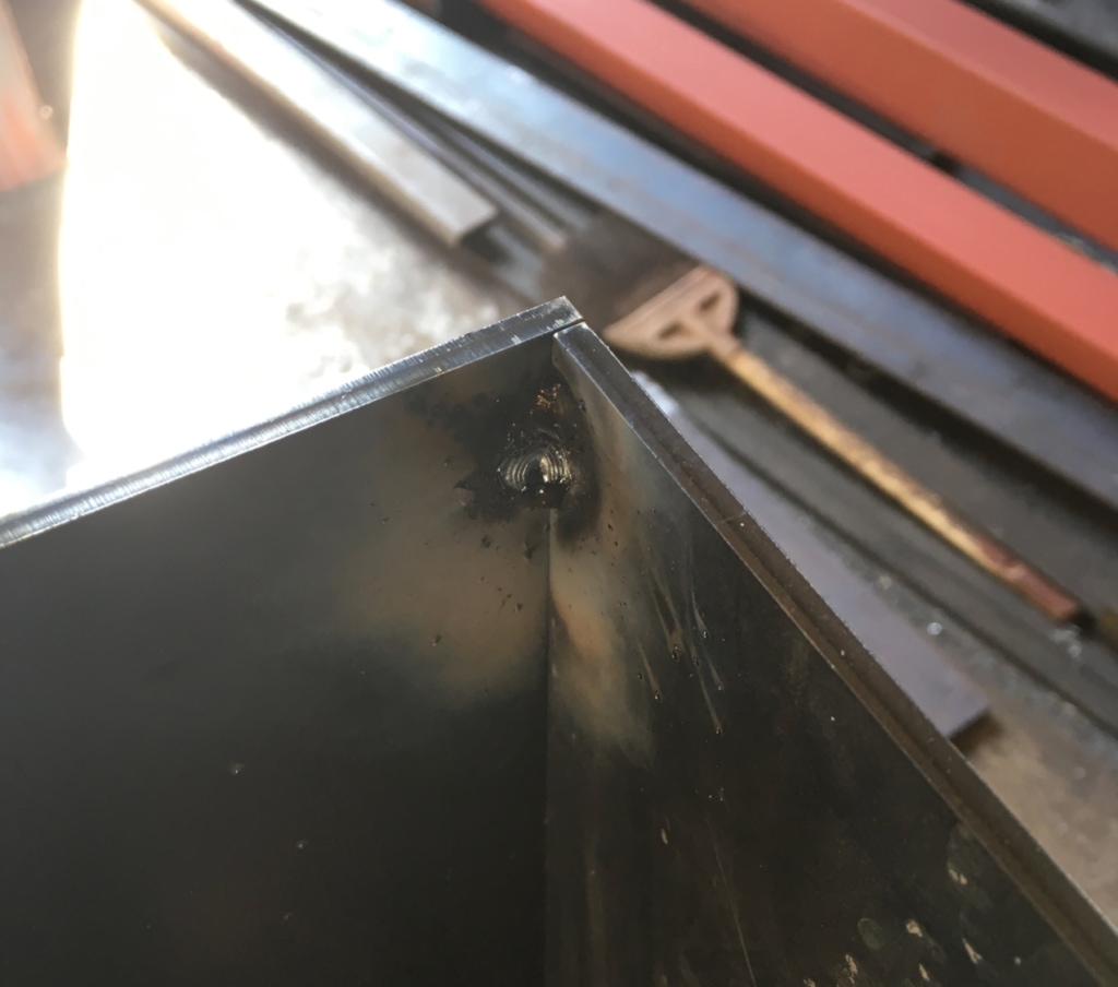 いきなり角を溶接してしまうと、間違いや変更がもしあった時にサンダーが入らないので、たったこれだけの溶接の為に、ガスを持ち出して切らなければならないなんてことになります。
