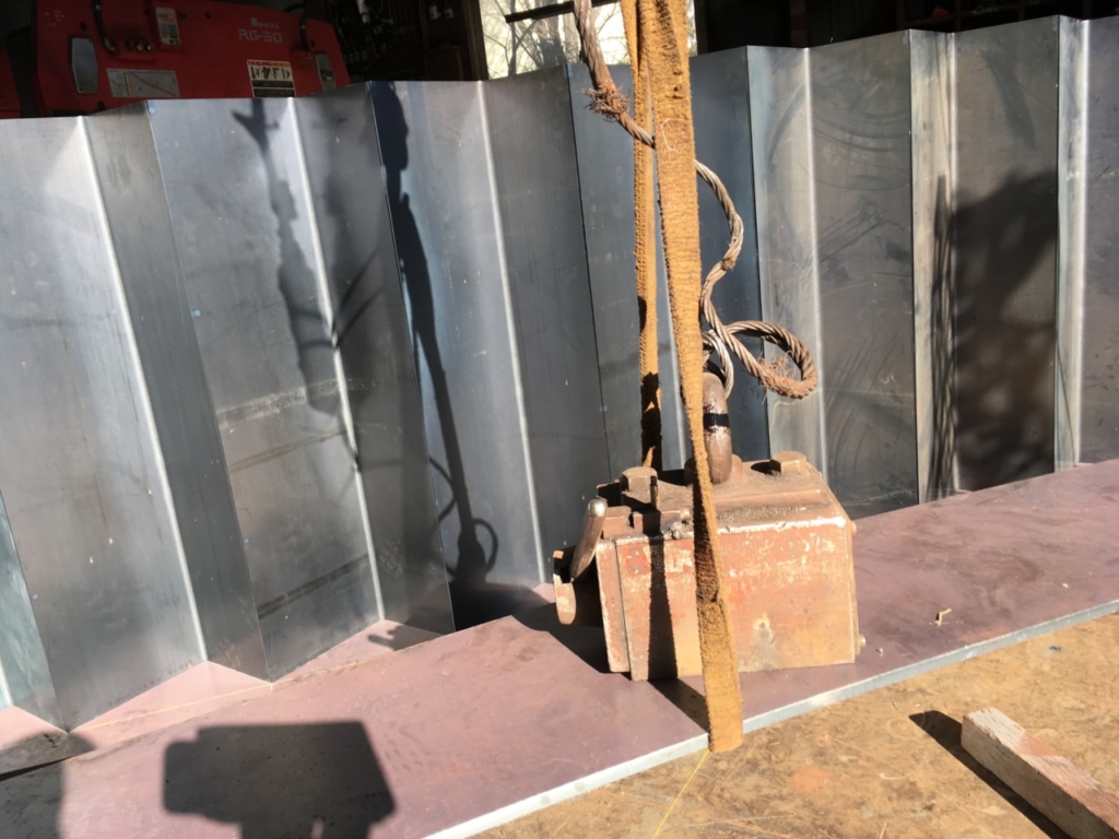 ここは調子にのってマグネットだけでやろうとしないで、しっかりスリング(強い布紐)を使って上げるのがポイントです。
