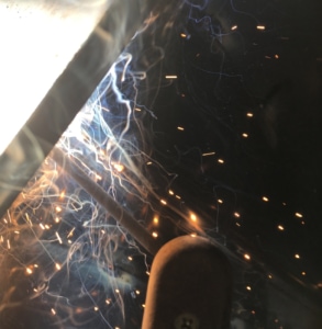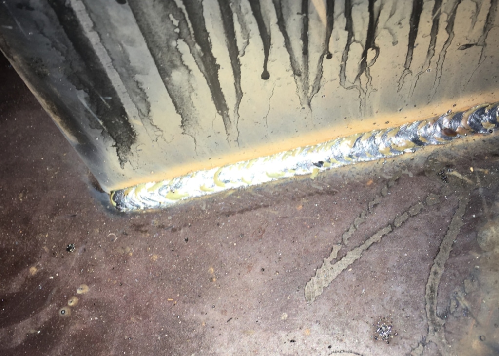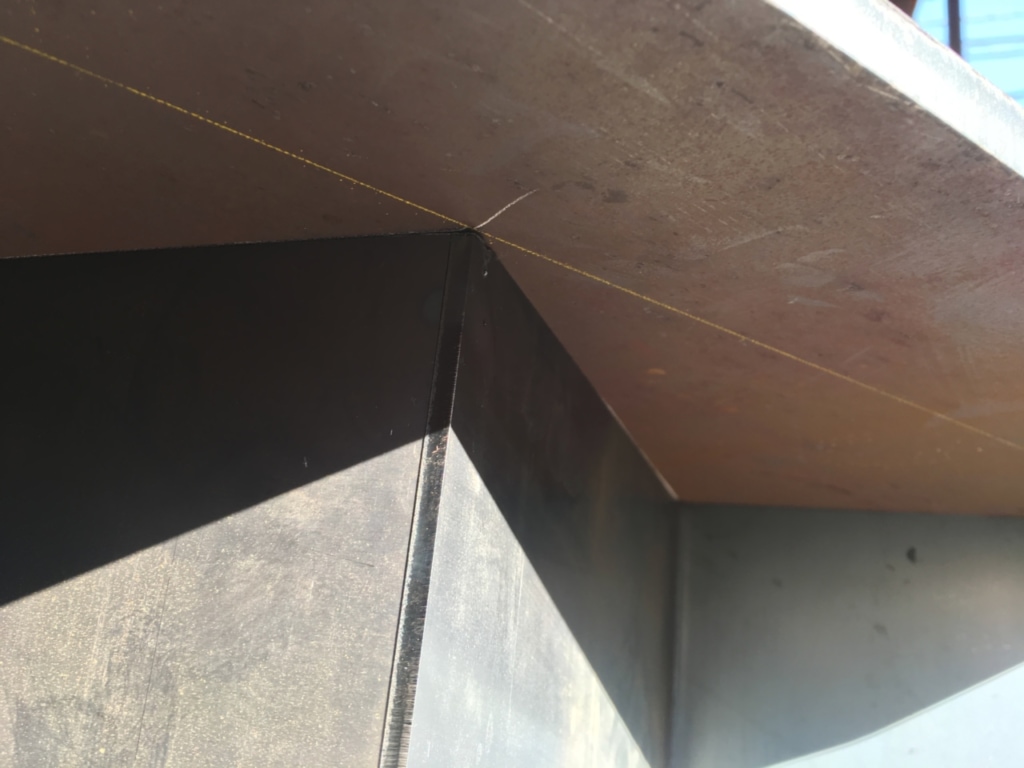 仮止めも全て終わり、固定も終え、後はどんどん溶接していくだけです。溶接のコツとしては、引くというより、置いていくというか流し込んでいくといった感覚でしょうか。