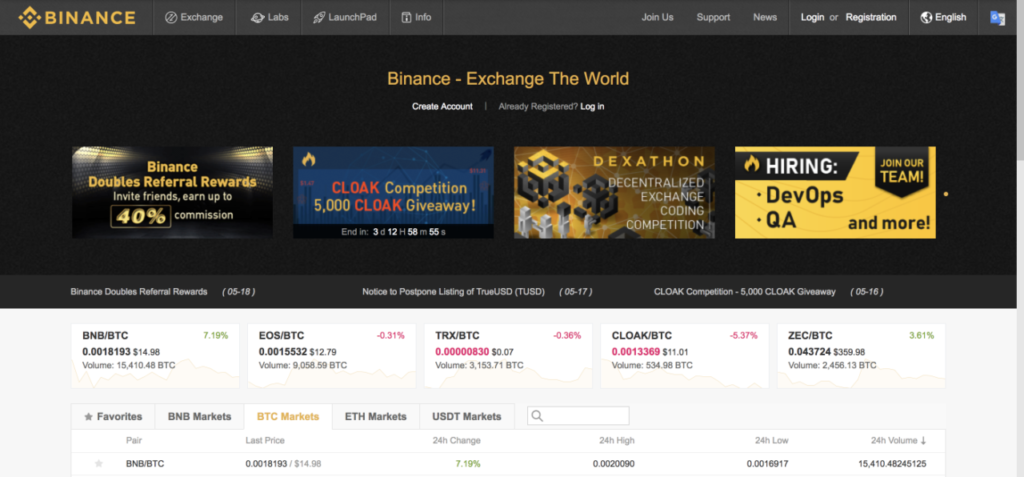 仮想通貨取引所も今や山ほどありますが、その中でも相変わらず最強なのがBINANCEですね。