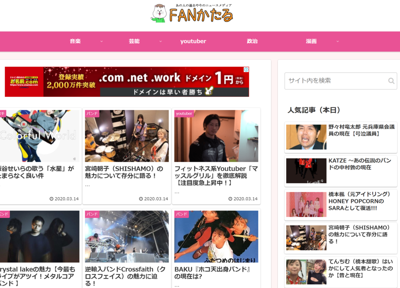 以前から芸能系のサイトも作りたいと思っていて、前に途中まで作っていたのがあったのですが、サブドメインでやってしまっていたので全部1から作り直し。
