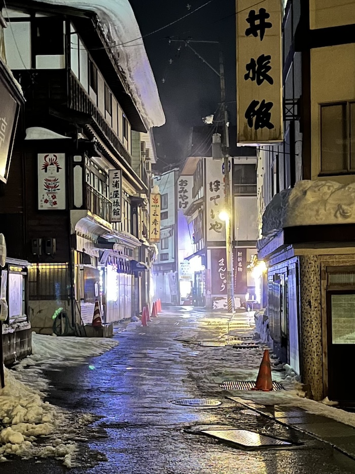 深々と雪が降り積もり、回廊のように続く白の世界に温泉街が包まれると、そこはまさに別天地となる。
