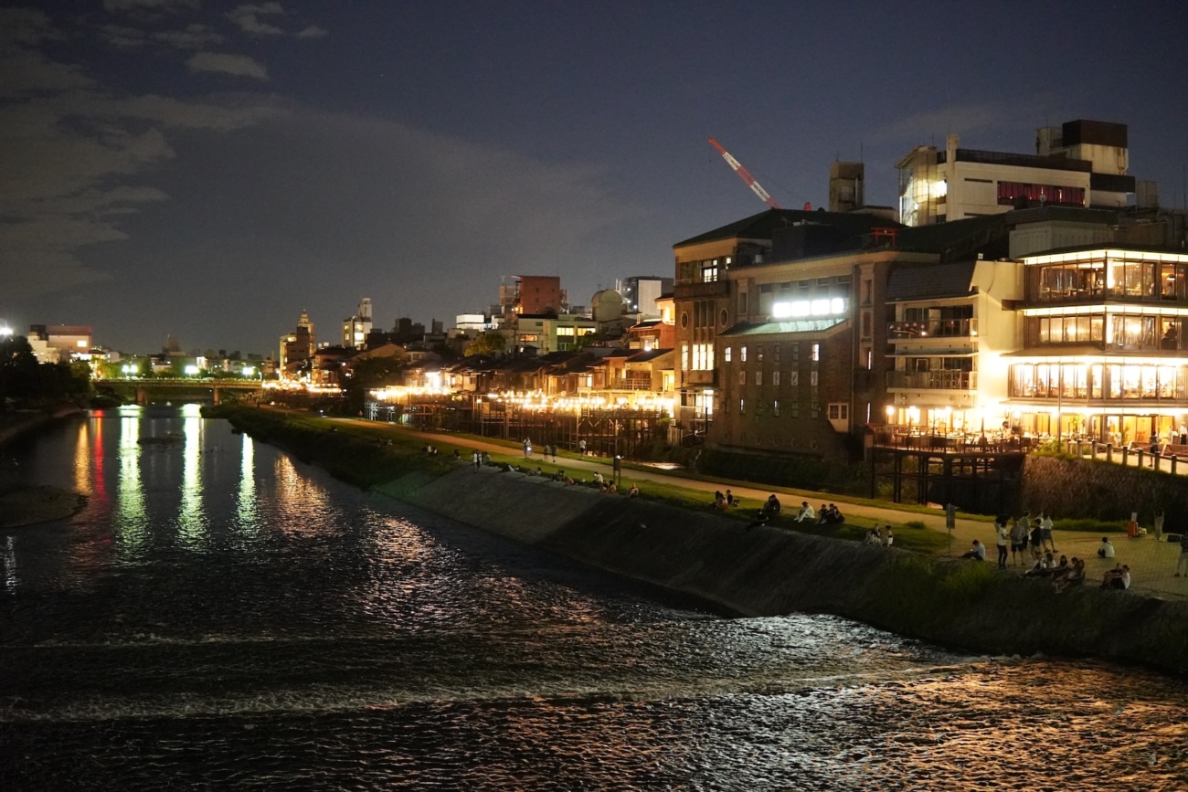 画像:三条から四条付近の鴨川納涼床の夜景(撮影:高野晃彰)
