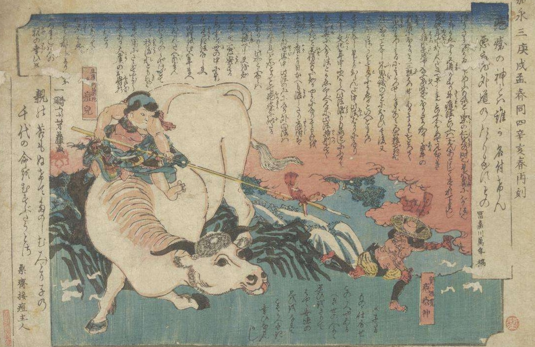そこで医師たちは接種の安全性を伝えるため、「牛痘児(ぎゅうとうじ)」と呼ばれる守護神を考案し、浮世絵などを通じて人々に啓蒙を行ったのである。