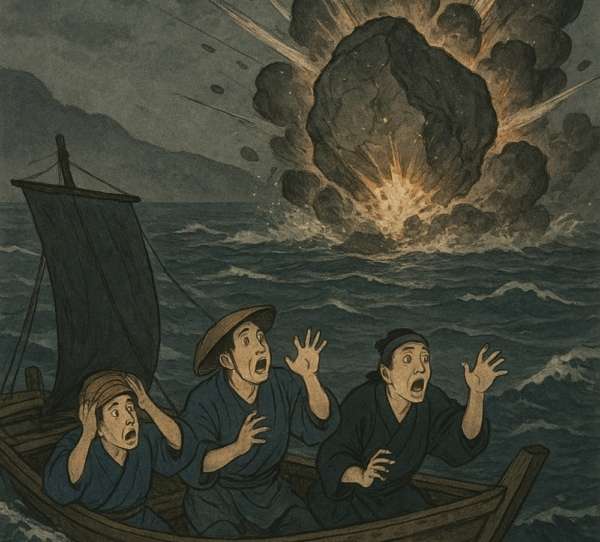 これも『妖怪談義』に紹介されており、五月の霧深い夜、海に出た漁師が突如、岩が崩れるような轟音を耳にするが、翌日現場を確かめても何の痕跡もないという。