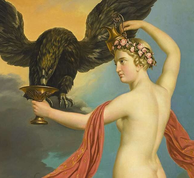 画像 : 鷹(ゼウス)にネクタルを飲ませる女神 public domain