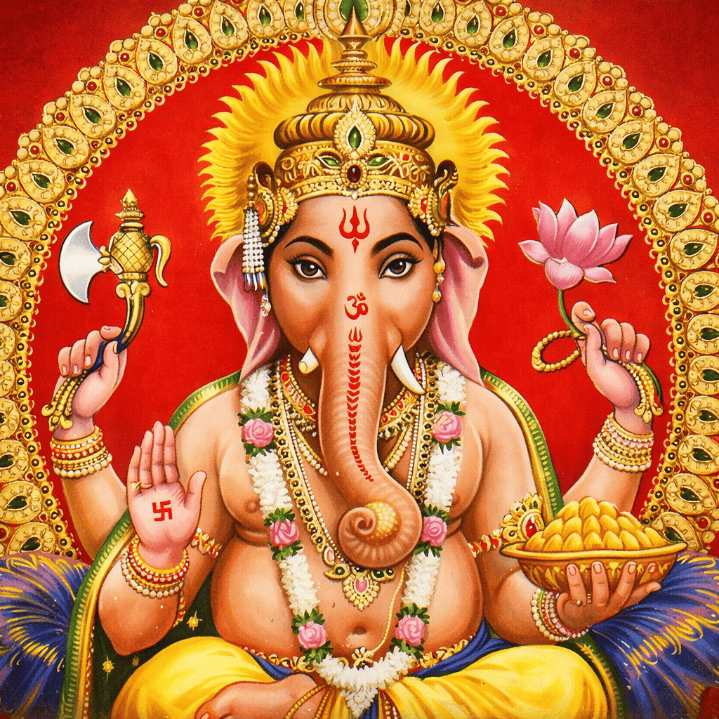 ガネーシャは女神パールヴァティの子で、彼女が自分の身体から出た垢(あか)をかき集め、作った人形に魂を吹き込んで創造しました。