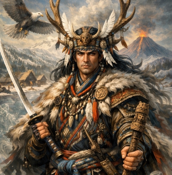 画像 : オキクルミとなった義経 草の実堂作成(AI)