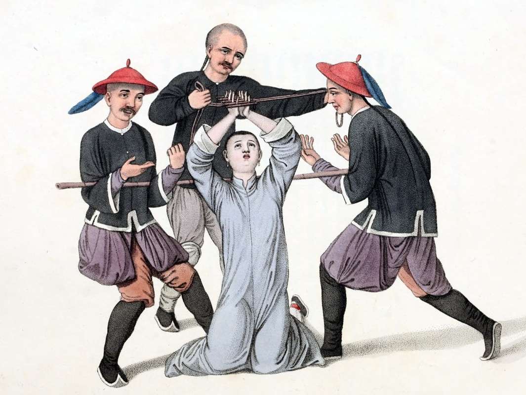 画像 : 拶刑(さんけい)の銅版画(1801年)『中国刑罰図説(The Punishments of China)』より Public Domain