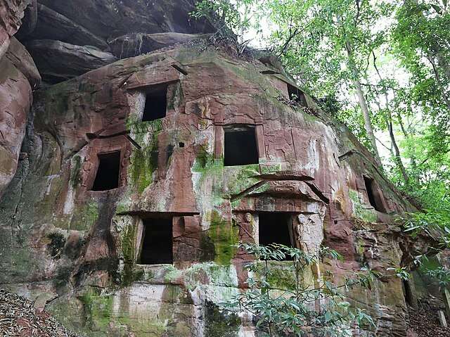 画像 : 四川省宜賓市・石城山崖墓群(断崖を葬送空間として利用した崖葬遺構。僰人懸棺と同系統の葬送文化を示す例)Nekitarc CC BY-SA 4.0