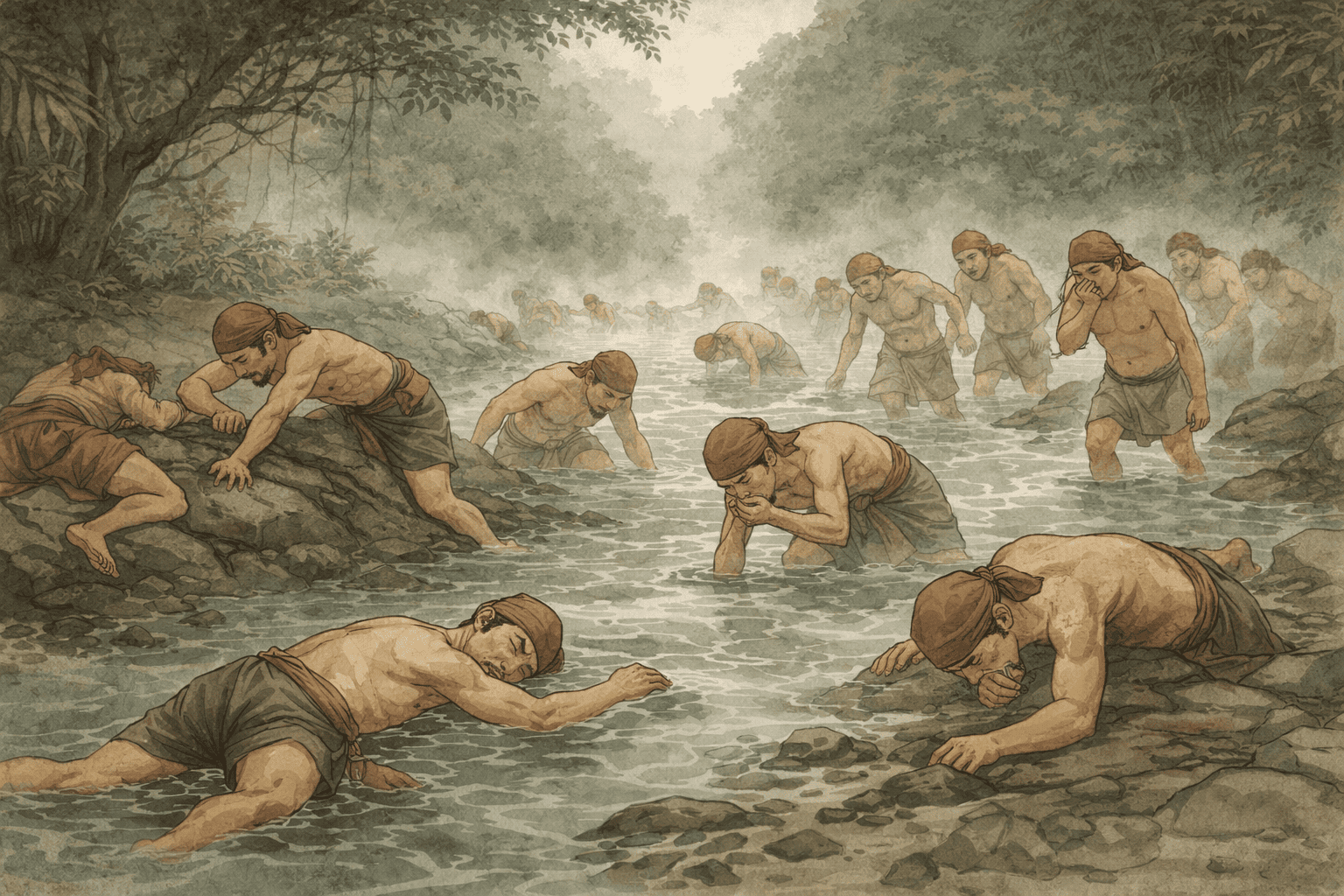 さて、生身で川を渡る以上、命を守るため兵士は鎧を脱がなければならない。