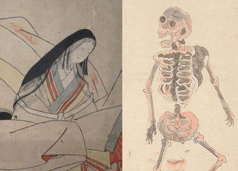 画像 : 狩野派の英一蝶作とされる九相図。小野小町を描く(描写は一部カットしてあります)CC BY 4.0