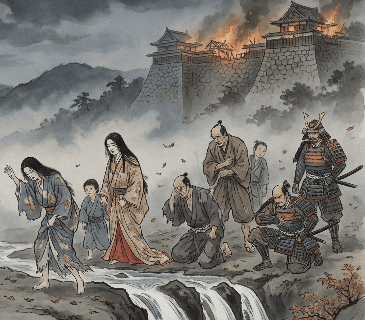 画像 : 御主殿の滝での後北条氏 イメージ(AI)
