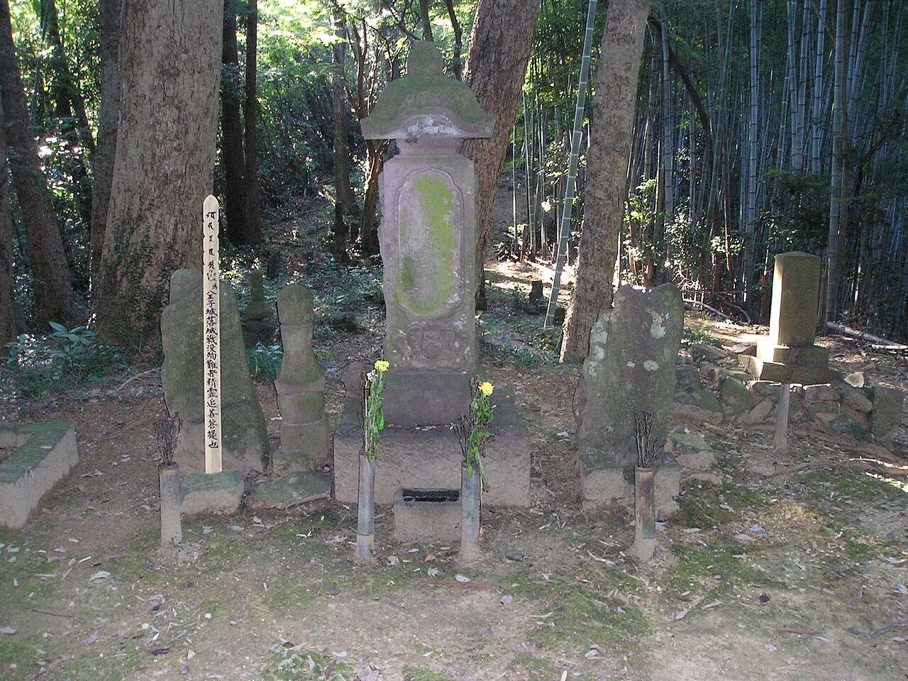 画像:八王子城付近に建つ北条氏照の墓。墓の左右は北条氏照家臣中山家範とその孫、中山信治の墓。背後の石塔群は氏照の家臣団の墓とされている wiki c 鎌倉