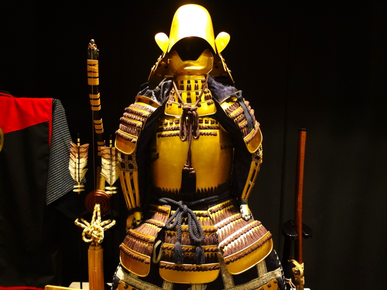 これらの意味を総合すると「金溜塗で美しく仕上げた各パーツを黒糸で縅している、二枚胴の鎧一式」と言えるでしょう。