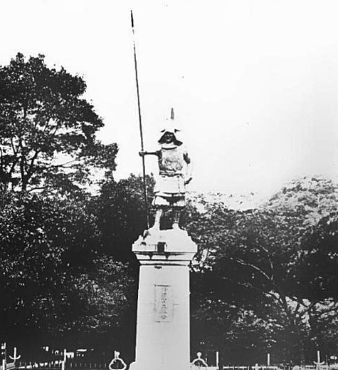 画像 : 大正2年(1913年)3月29日に除幕した徳島城趾公園にあった蜂須賀正勝の銅像 public domain