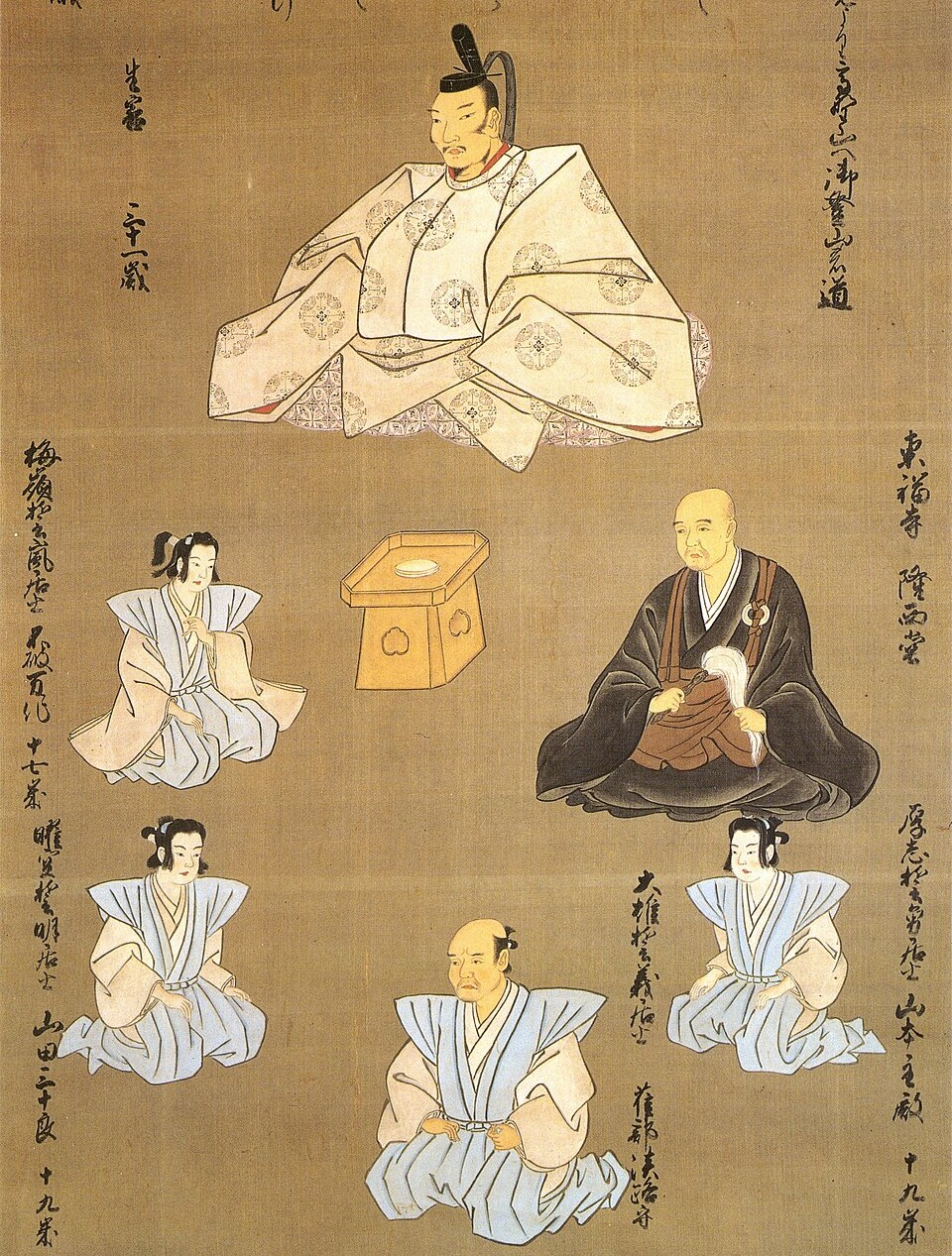 画像:豊臣秀次と殉死した隆西堂、山本主殿、不破万作、山田三十郎、雀部淡路守(瑞泉寺蔵) public domain