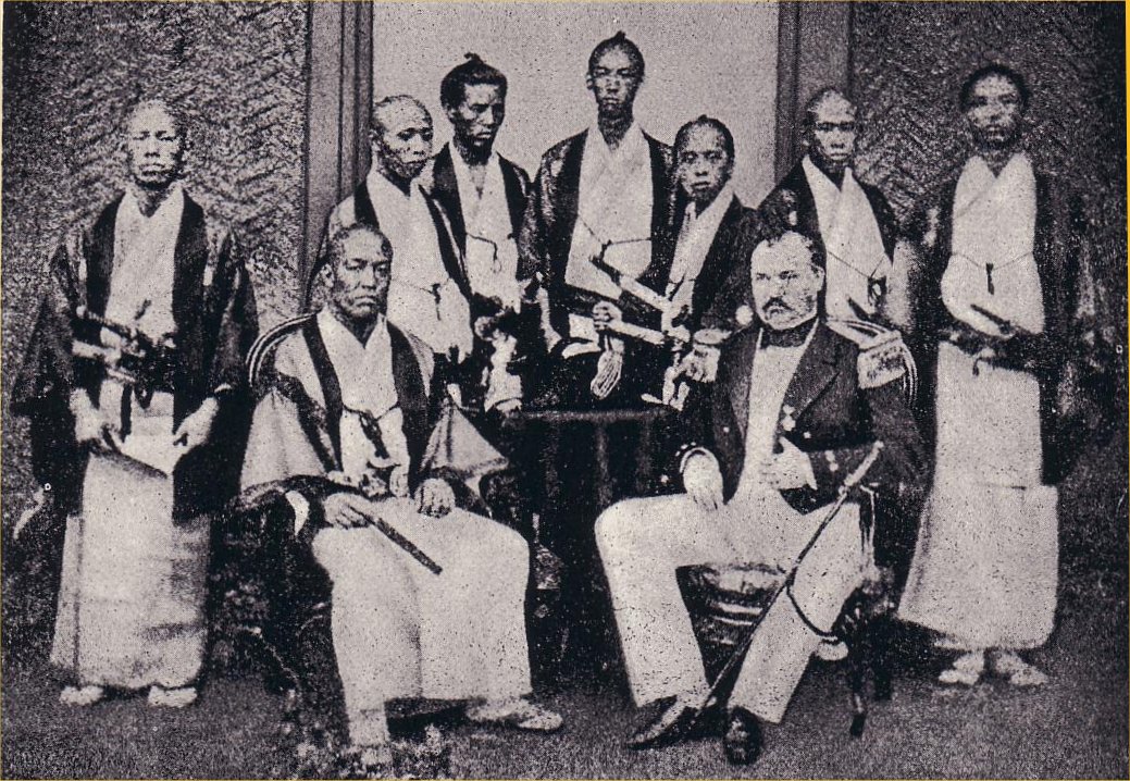 画像 : ポンペを囲む医学生、前列ポンペの左は松本良順 public domain