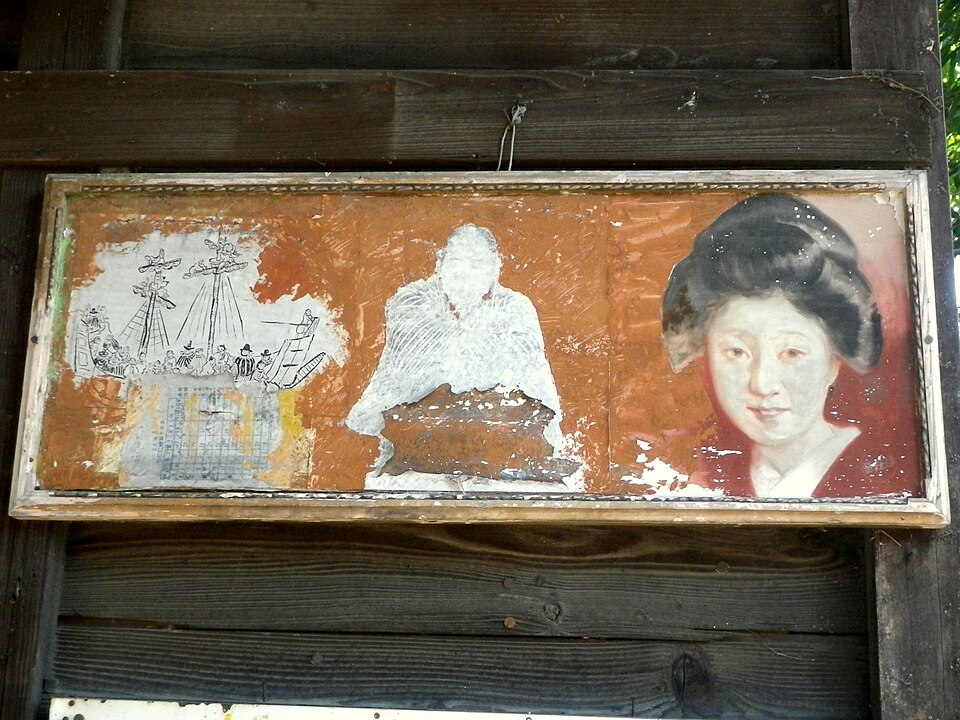 画像:朝日神社(仙台市青葉区上杉)に飾ってある仙台四郎の絵(2015年7月)現在行方不明(2021年) wiki c ChampagneFight