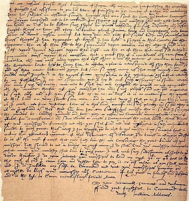 アダムスは書簡に「漂着から9日後、この国の大王が私を呼び寄せた」と記しています。