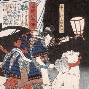 画像 : 曲亭馬琴『南総里見八犬伝』の一幕。月岡芳年「美勇水滸傳 里見二郎太郎義成」Public Domain