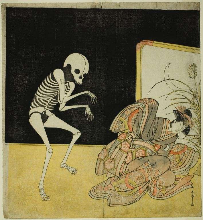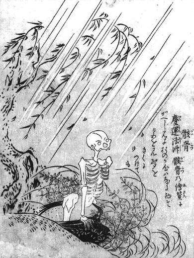 画像:鳥山石燕の妖怪画集『今昔画図続百鬼』(安永8年/1779年刊行)に所収の一図「骸骨」public domain