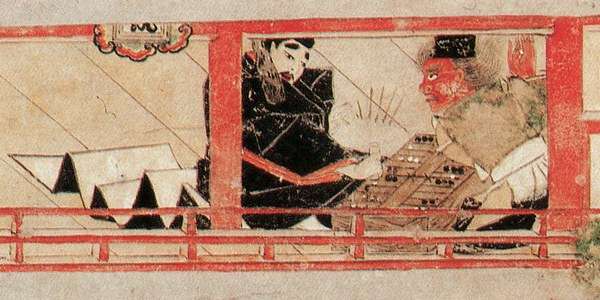 紀長谷雄と朱雀門の鬼の双六勝負 public domain