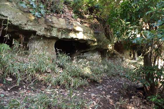 葛原岡・大仏ハイキングコースの葛原岡神社を過ぎ、浄智寺へ向かう途中、北側に下った場所にあるやぐら群。