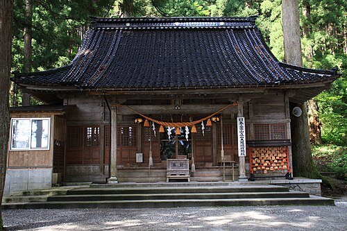 画像:雄山神社中宮祈願殿(富山県立山町芦峅寺)。かつての中宮寺の境内にあたり、布橋灌頂会はこの一帯で行われた。public domain
