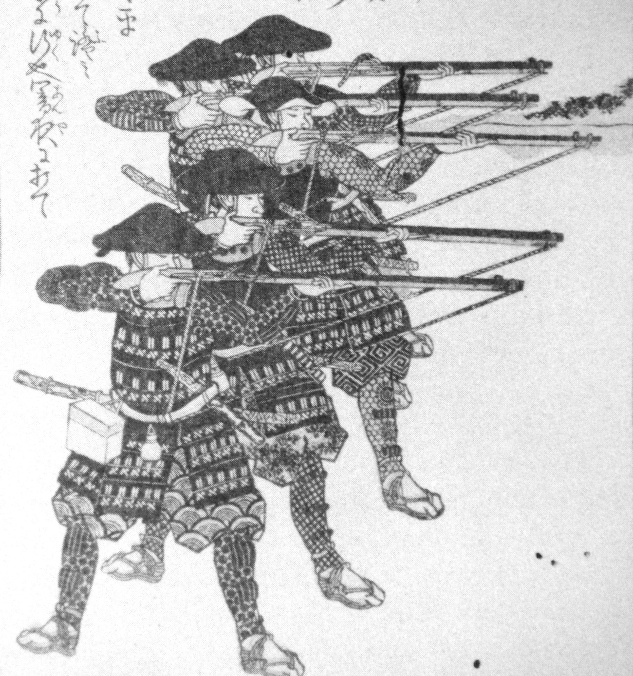 画像:一列に並んで立射を行う足軽 public domain