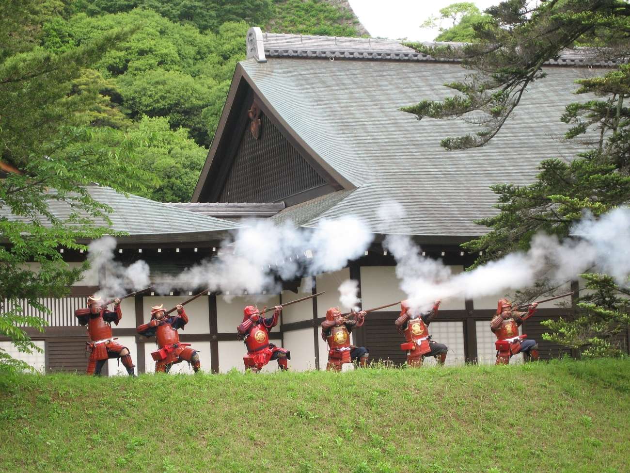 画像:彦根城における火縄銃釣瓶打の演武 public domain