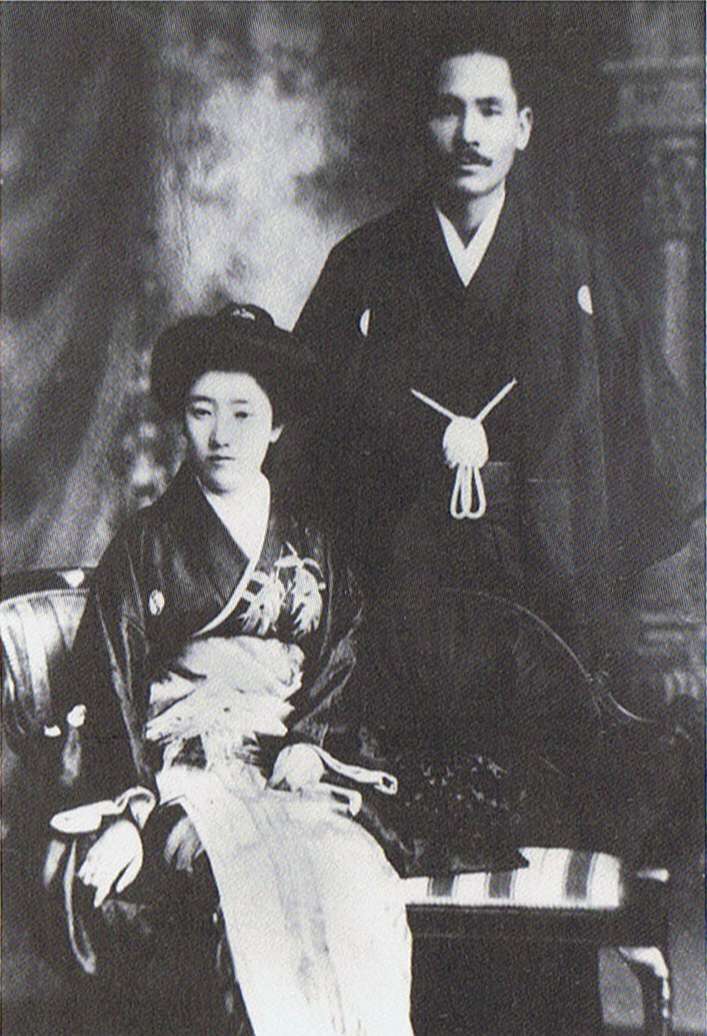 画像:伊藤傳右衛門と柳原燁子(柳原白蓮)の結婚写真。明治44年(1911年)3月 public domain