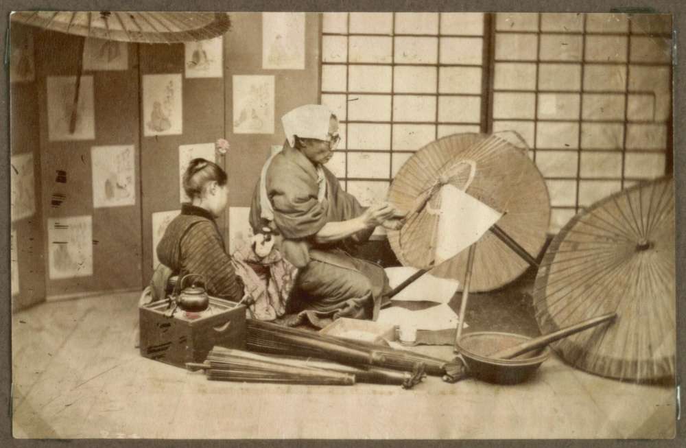 画像 : イメージ「傘貼りの仕事」(1860年代)public domain