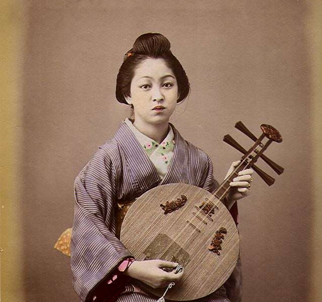 画像 : 月琴を弾く娘(彩色、1890年、ライムント・フォン・シュティルフリート撮影)public domain