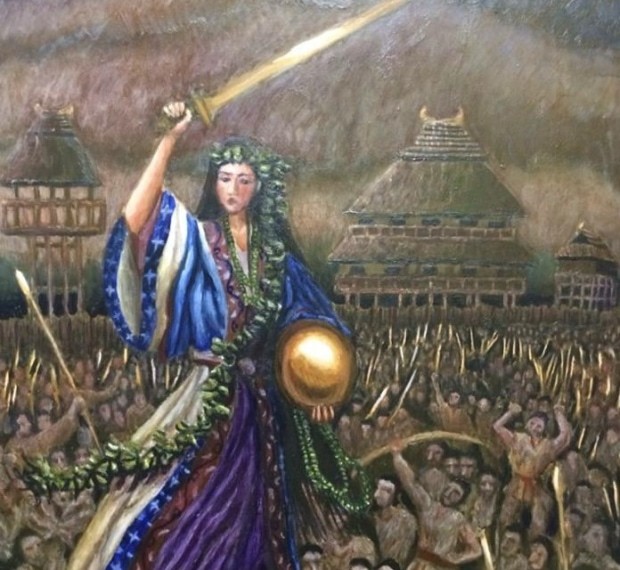 画像:伊都国との闘いに備え、兵士達を鼓舞する女王卑弥呼 public domain