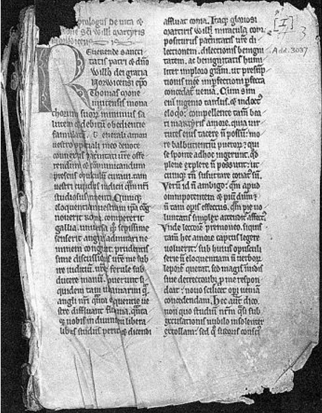 画像:トーマス・オブ・モンマスの伝記(写本家による写し、ケンブリッジ大学図書館) public domain