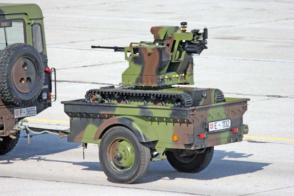 画像 : 追跡戦闘ロボット「Miloš」を搭載したセルビアのランドローバー・ディフェンダー牽引トレーラー Srđan Popović CC BY-SA 4.0