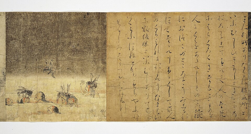 画像:『地獄草紙』より膿血地獄の場面(12世紀、奈良国立博物館蔵、国宝)。平安末期には穢れをともなう地獄図がすでに絵巻として表現されていた。public domain