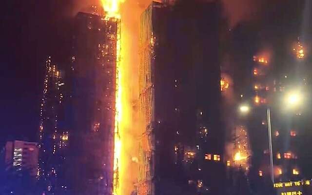 11月26日、香港・新界地区の大埔(タイポー)にある高層住宅団地「宏福苑(Wang Fuk Cour…