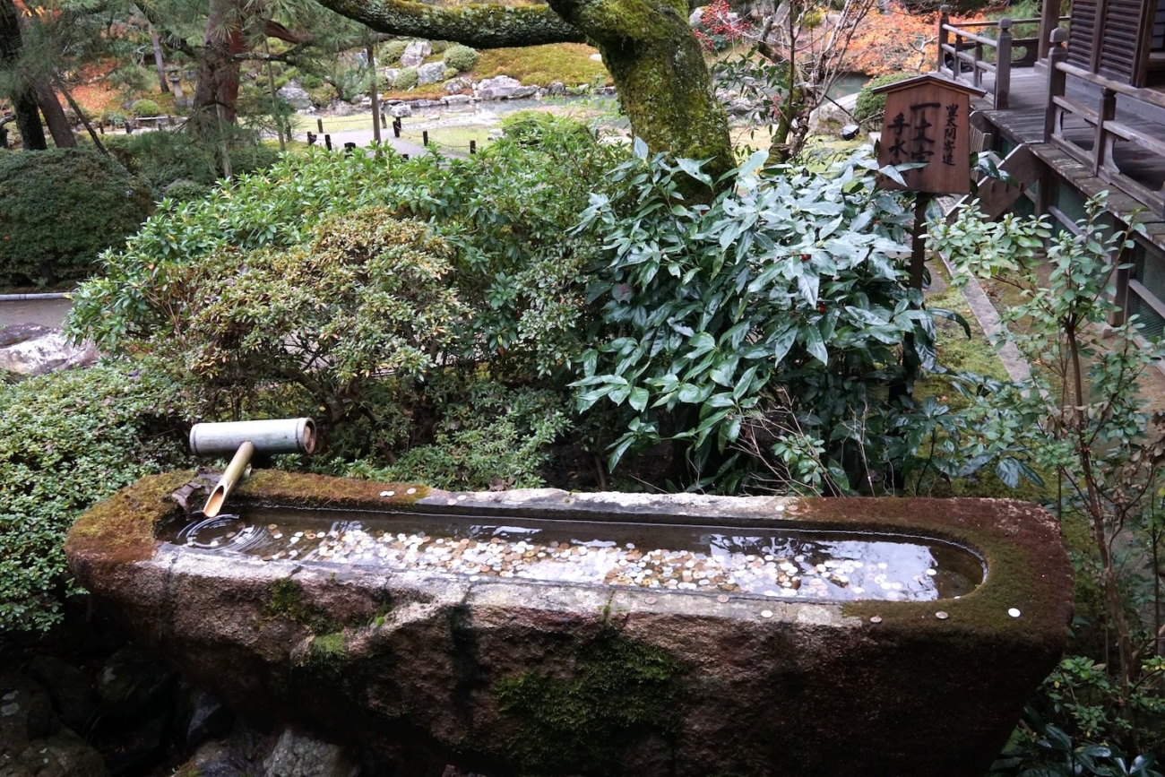 画像:青蓮院門跡。豊臣秀吉が寄進した一文字手水鉢(撮影:高野晃彰)