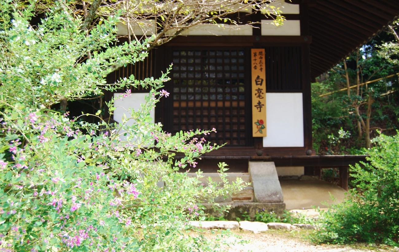 画像:白毫寺のお堂と萩の花 筆者撮影
