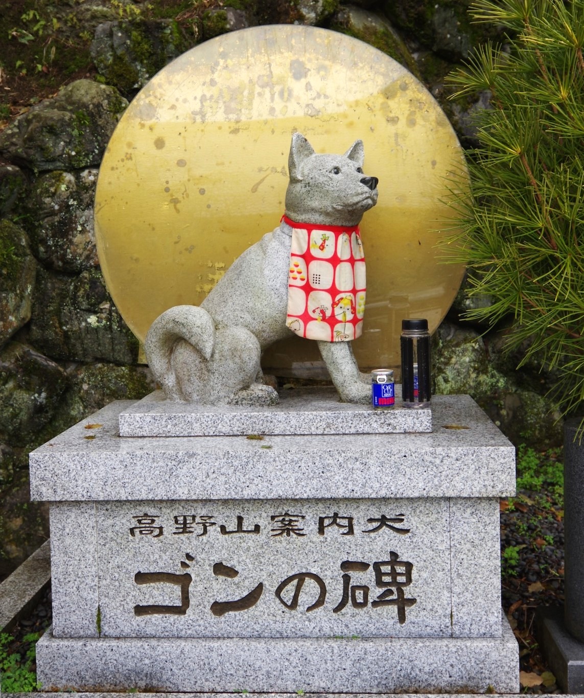 その面影を偲び2002年7月23日、境内の弘法大師像の横に「高野山案内犬ゴンの碑」が建立され、ゴンの石像が置かれました。