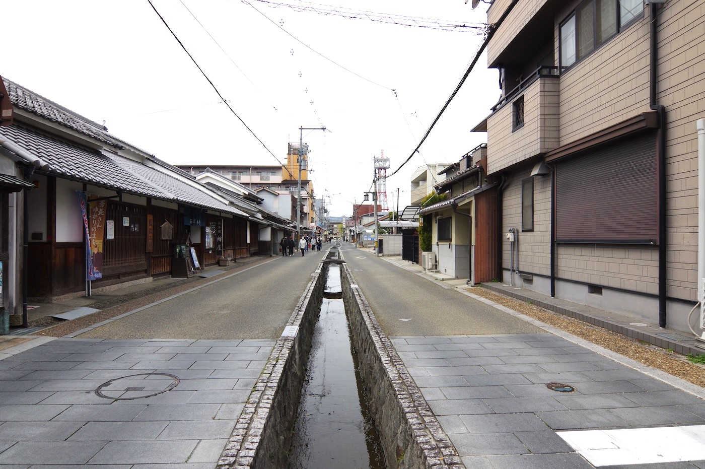 紺屋町の道路中央には、城の堀から引かれた水路が通っている。
