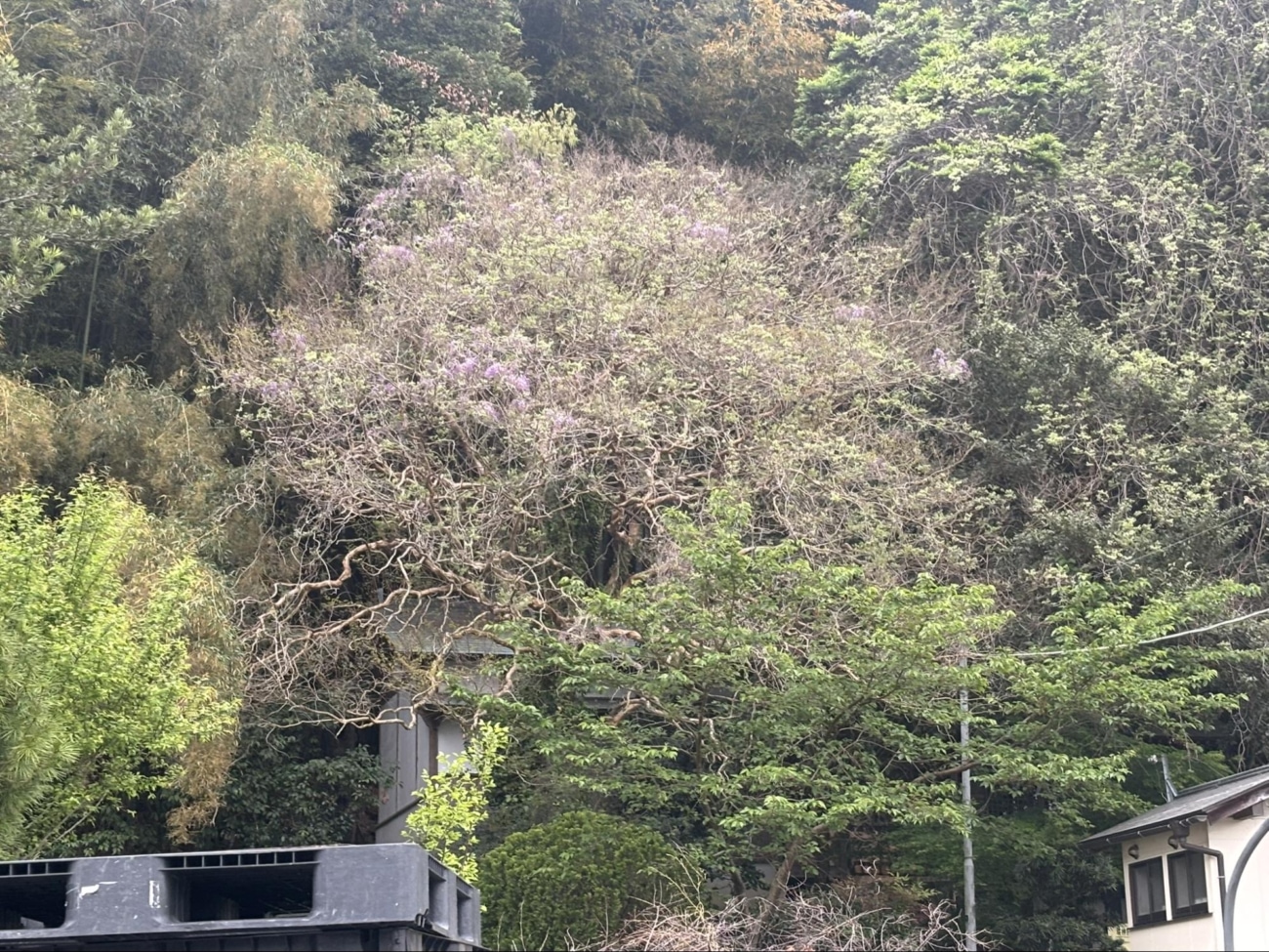 樹齢700年とされる藤の大木は、遠くからでないと全容がわからないほど巨大なのです。
