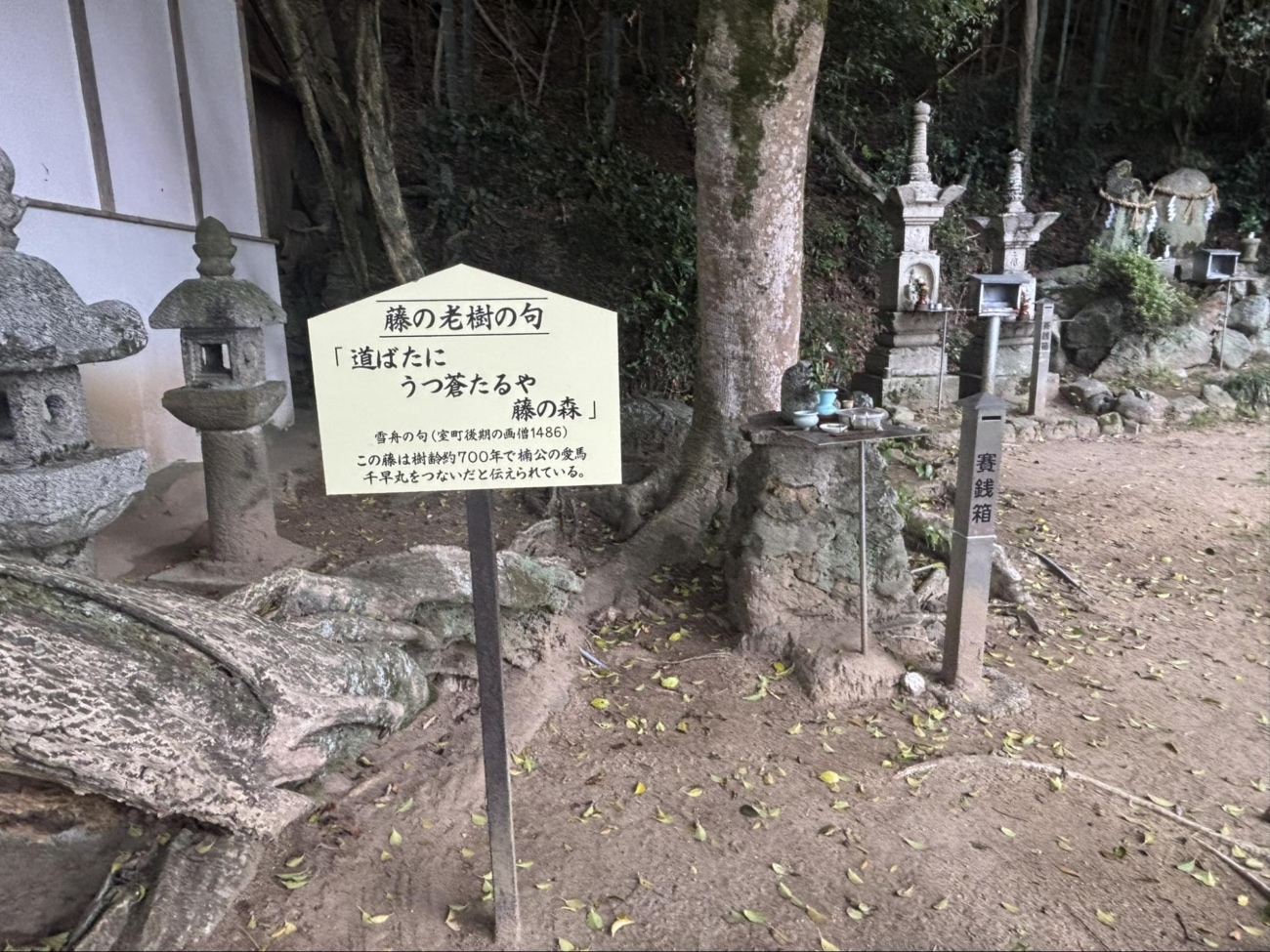 困り果てた正成ですが、神社の境内にあった藤の木に千早丸を繋いで、必至となってお祈りをします。