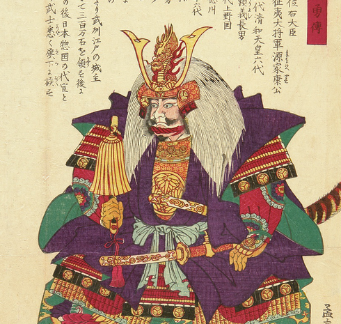 画像:孟齋芳虎画「三河英勇傳」より『従一位右大臣 征夷大将軍源家康公』 public domain